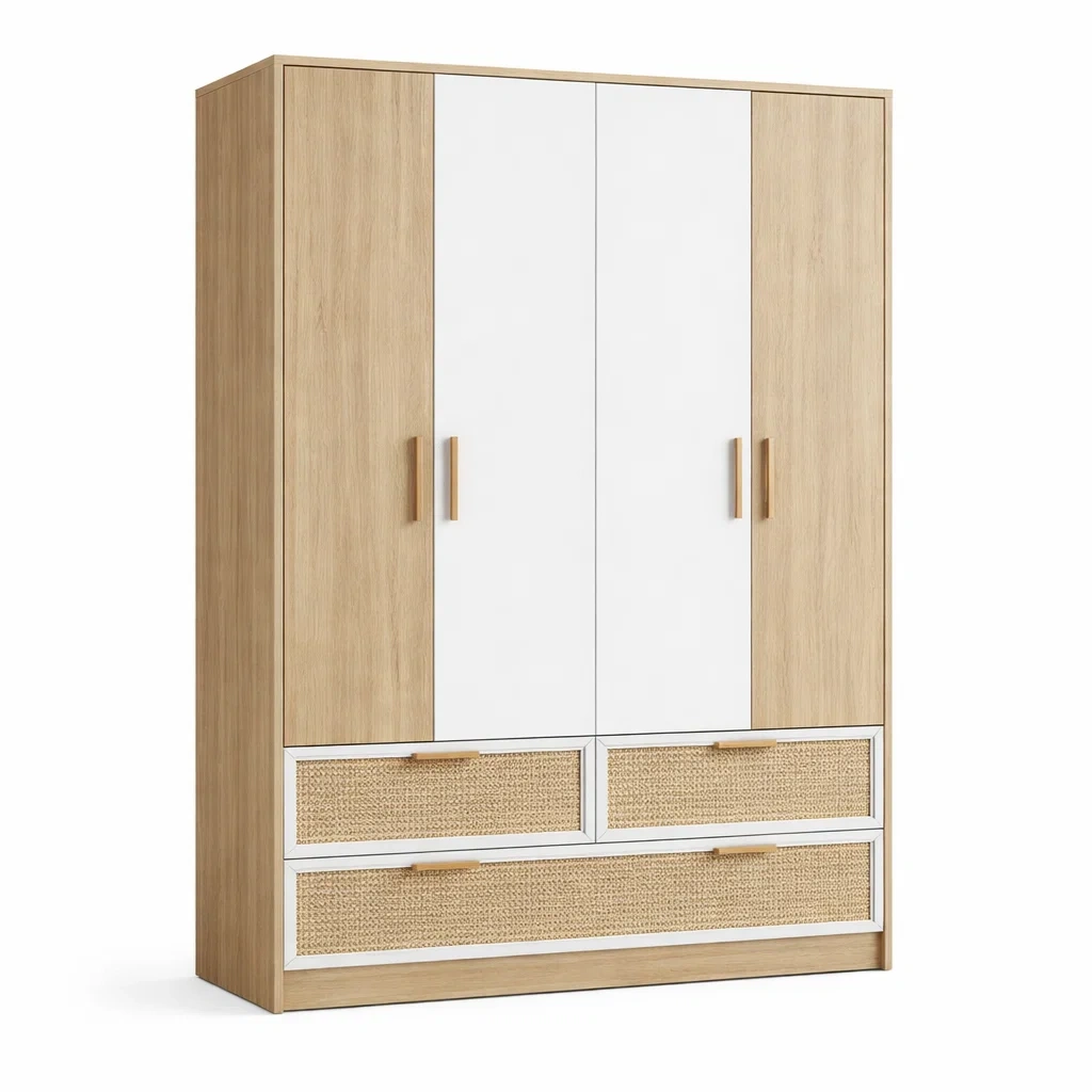 Armoire en bois et MDF avec tiroirs en rotin 200x120x50 cm