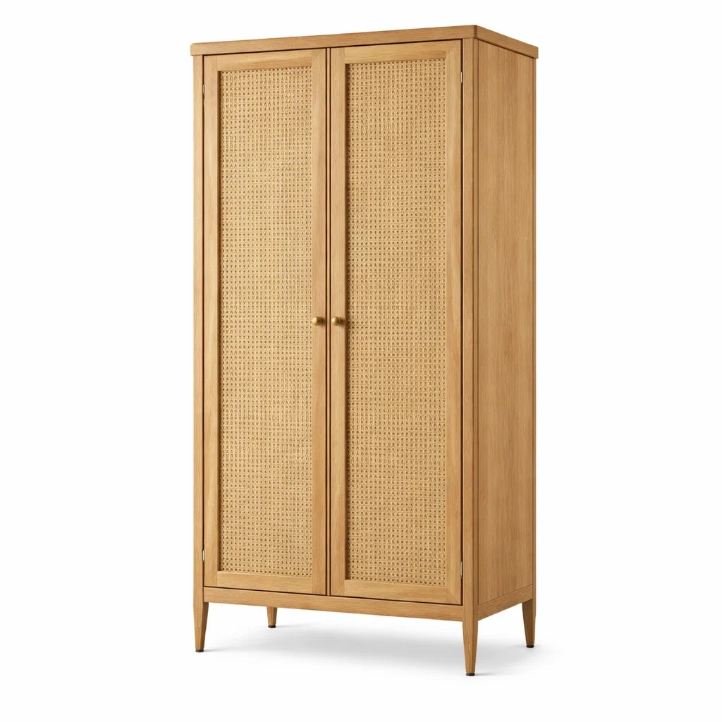 Armoire en bois avec portes en cannage