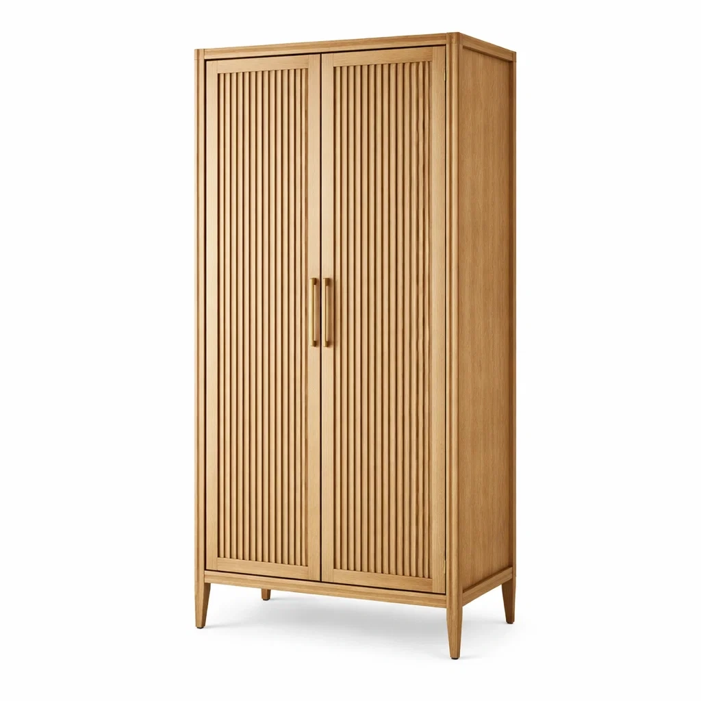 Armoire en bois de chêne clair avec poignées en métal