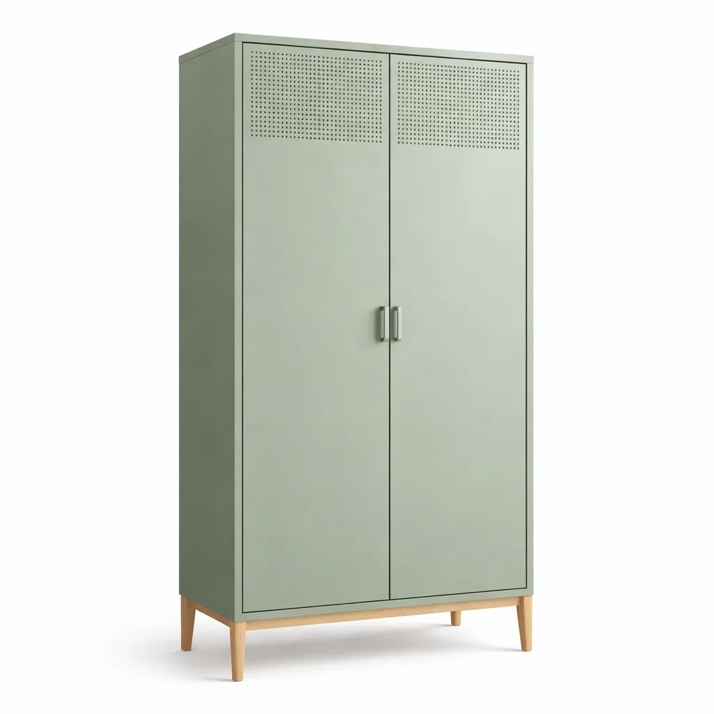 Armoire en bois avec portes perforées vert menthe